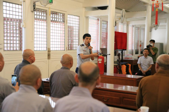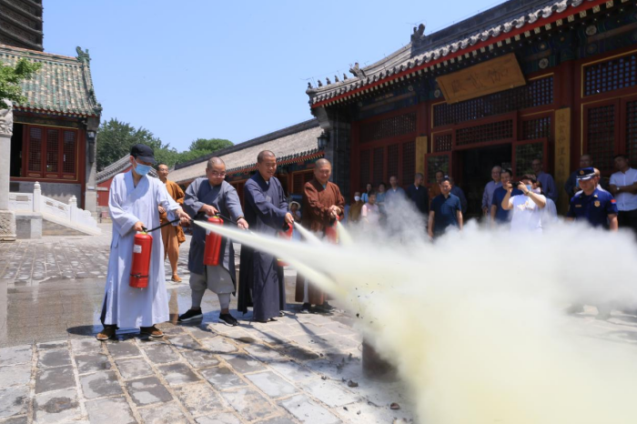 2023年6月15日上午,根据市民族宗教委“安全生产月”活动相关部署要求,为营造“人人讲安全、个个会应急”的浓厚氛围,提升场所的安全意识和应急能力,北京市佛教协会在天宁寺举办了安全专题培训和应急演练。市佛协教务办公室主任姚龙传达了市民族宗教委“安全生产月”有关工作部署和工作要求,并结合全系统安全生产和消防安全专项整治深化年行动对场所提出了要求。市佛协还给每个场所发放了《安全与应急科普知识》读本。广安门消防消防救援站通讯班班长邢天宇,从火灾案例分析、火灾基本常识、场所安全与应急知识等方面进行了培训,对火灾起因、日常防火常识、灭火器使用方法、疏散逃生方法、应急与急救等方面进行细致讲解,特别是结合宗教场所特点,详细讲解了文物建筑的火灾预防知识及扑救方法。演练环节,现场人员对消防车、消防器材进行了观摩并对消防栓、干粉灭火器的使用进行了细致的学习和演练。通过此次专题培训和演练,不仅掌握了安全应急知识,增强了应急演练等方法技能,同时提升了安全意识和应对能力。